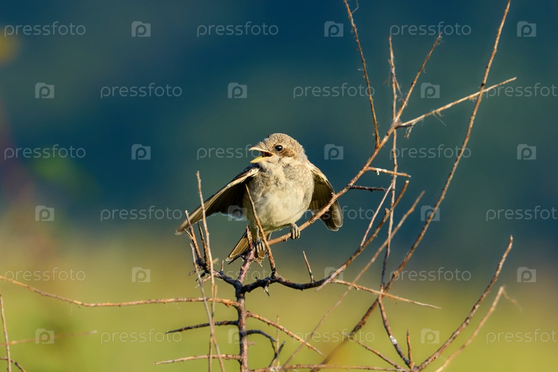 Красный сорокопут Lanius collurio.Молоденец зовет родителей