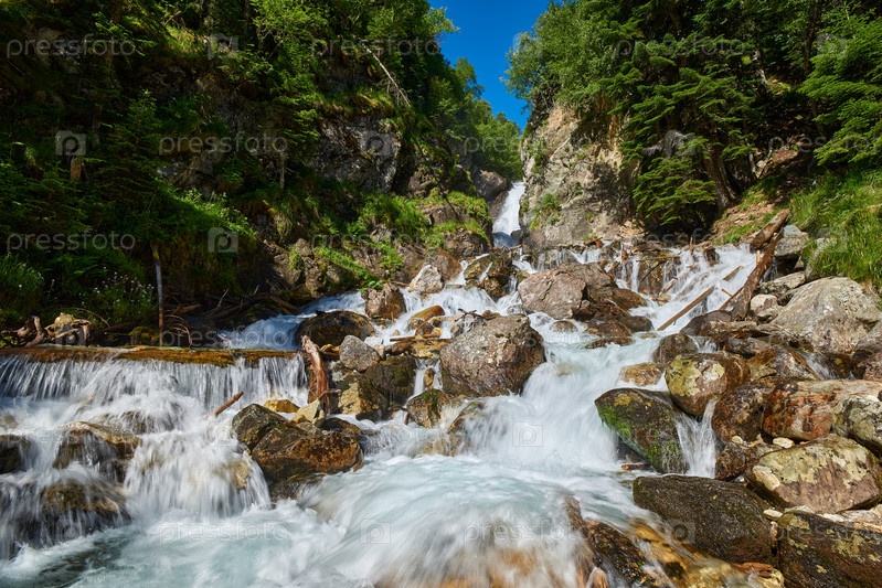 Горные реки текут среди валунов и соснового леса