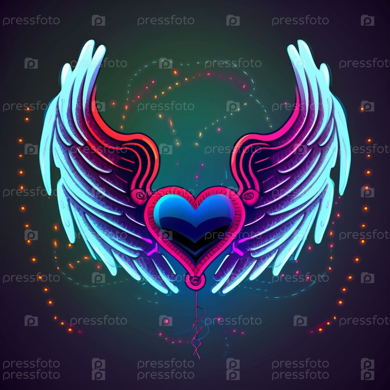 Мультяшный графический рисунок поющего сердца с крыльями