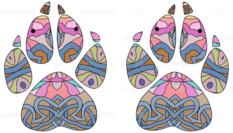 Следы собаки в стиле Zentangle, дизайн футболки, татуировка и другие украшения