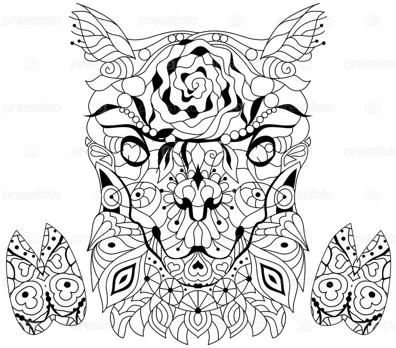 Zentangle стилизованная голова альпаки с копытами. для окраски Ручно нарисованная декоративная векторная иллюстрация