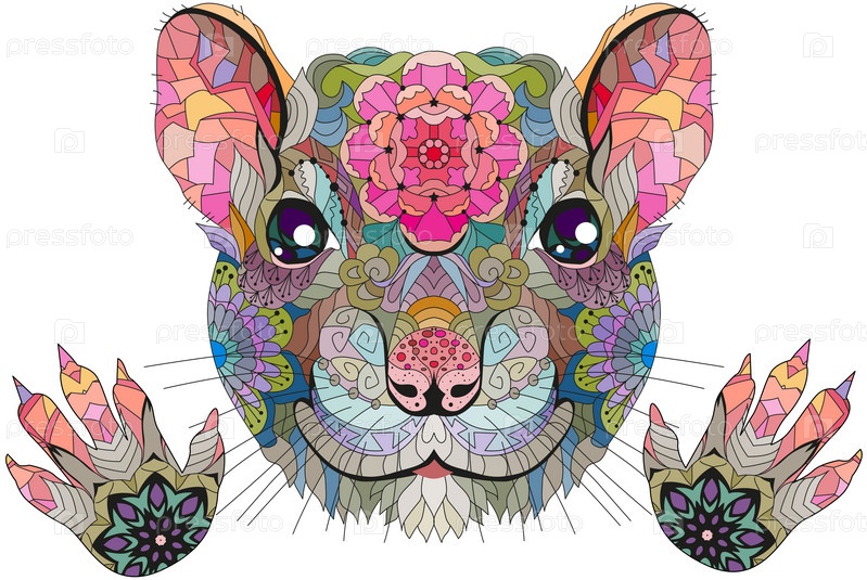 Нарисованная вручную голова крысы с лапами для футболки и других украшений