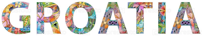 Векторное слово Хорватия. Ручная роспись художественного дизайна. Иллюстрация для дизайна футболок, татуировок и других украшений
