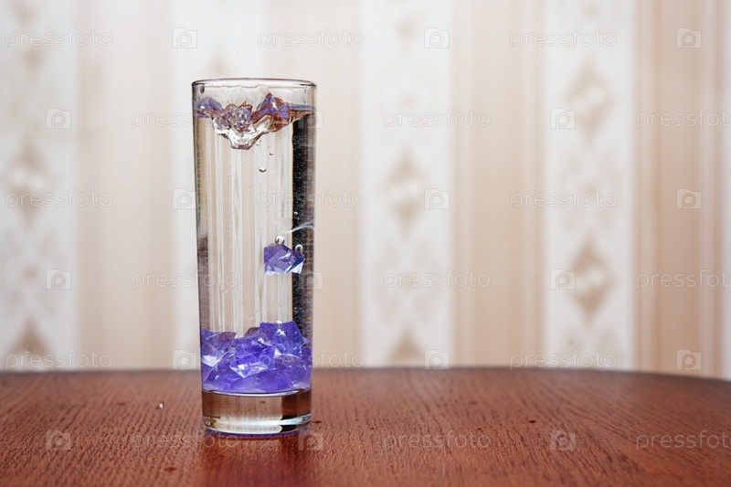 Стакан воды на столе в помещении крупным планом