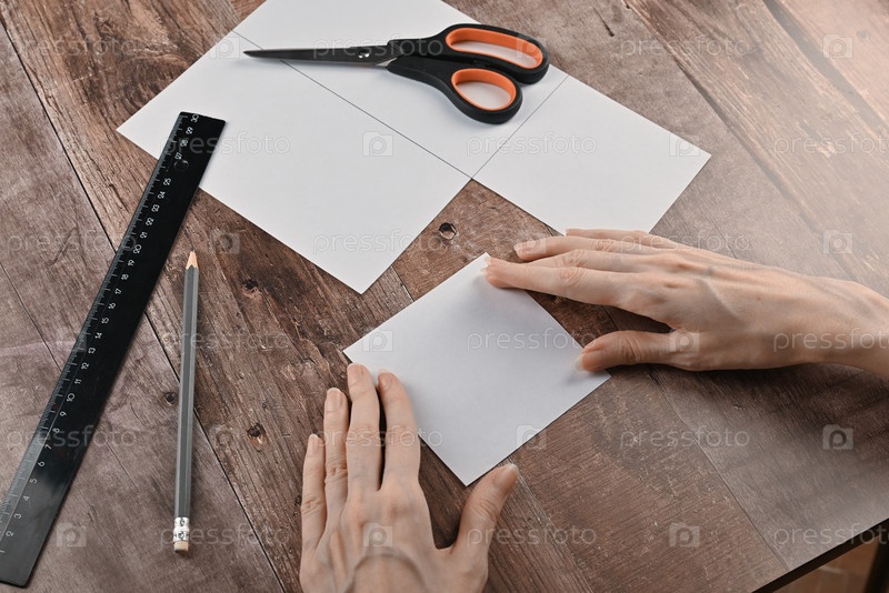 Руки пожилой женщины складывают бумагу для оригами. Создание журавлика из бумаги в технике оригами