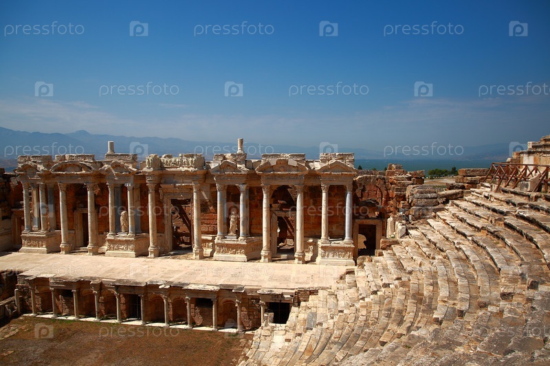 Окрестности Памуккале, Турция. Трибуны и сцена римского театра древнего Иераполя
