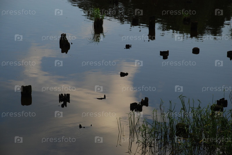 Отражение заката в воде озера