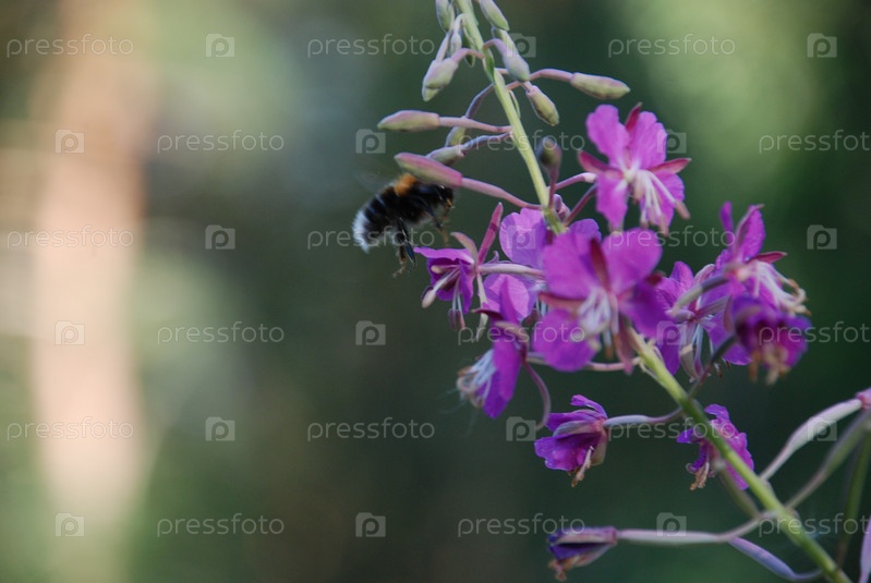 Шмель собирает нектар на цветках кипрея