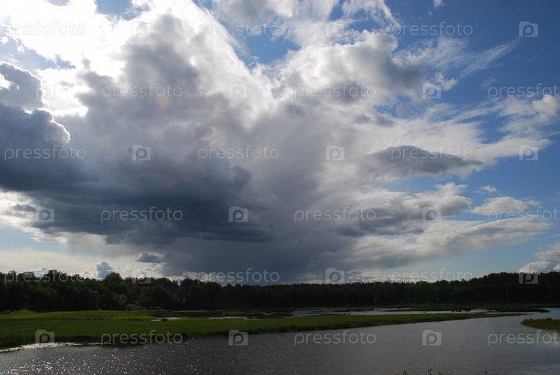 Бело-серые облака над лесом