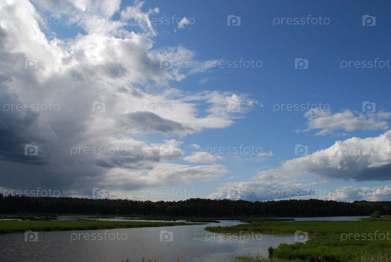 Бело-серые облака над лесом