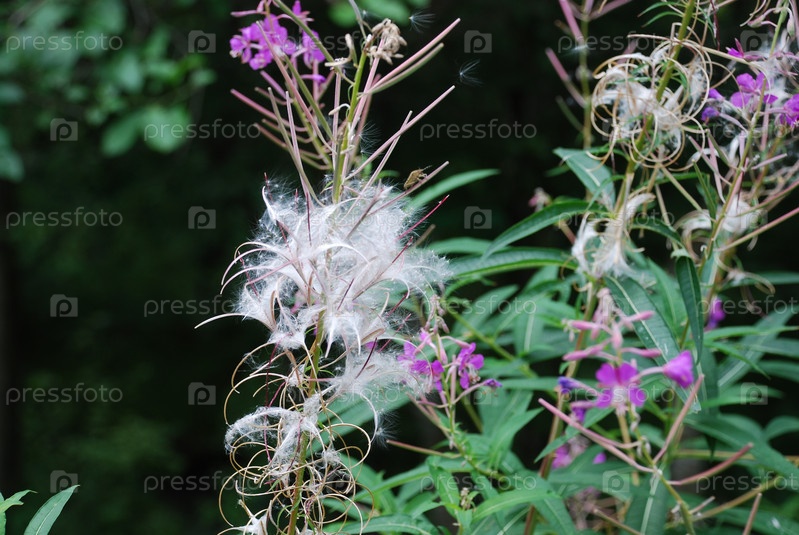 Воздушные семена растения кипрея. Кипрей отцвел и на месте цветков образовались белые пушистые семена, готовые взлететь при первом дуновении ветра