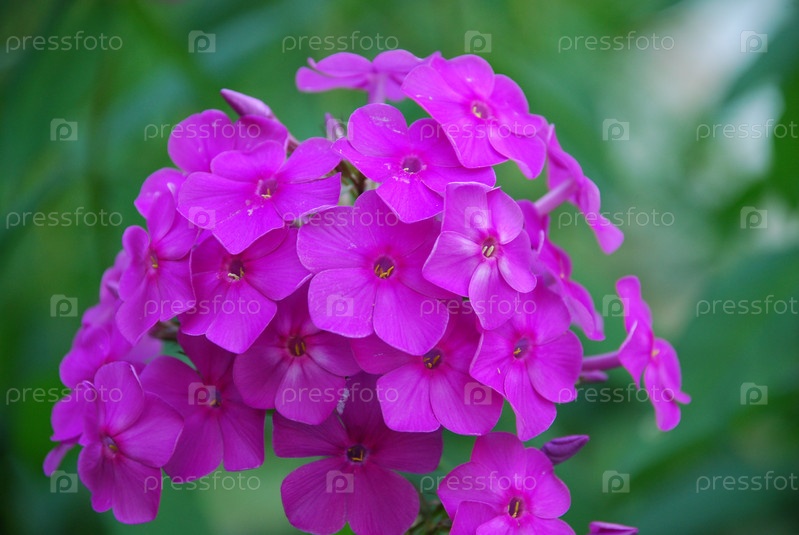 Темно-розовый флокс на зеленом фоне
