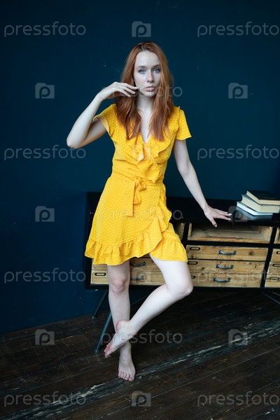 Портрет молодой красивой женщины с рыжими волосами в студии