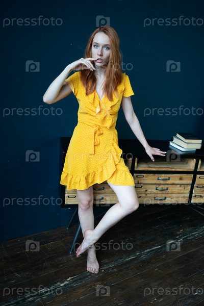 Портрет молодой красивой женщины с рыжими волосами в студии