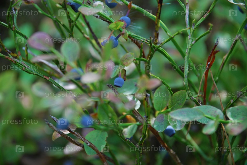 Темно-синяя черника на кусте