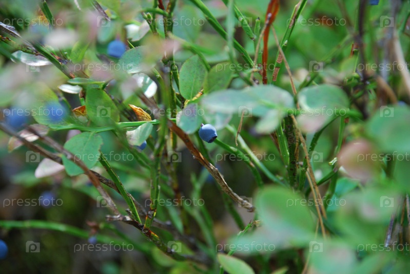 Темно-синяя черника на кусте