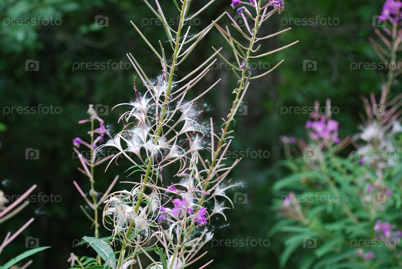 Воздушные семена растения кипрея. Кипрей отцвел и на месте цветков образовались белые пушистые семена, готовые взлететь при первом дуновении ветра