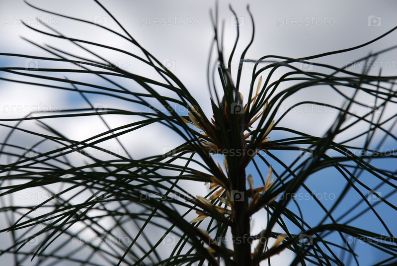 Длинные темные изогнутые иголки сосновые