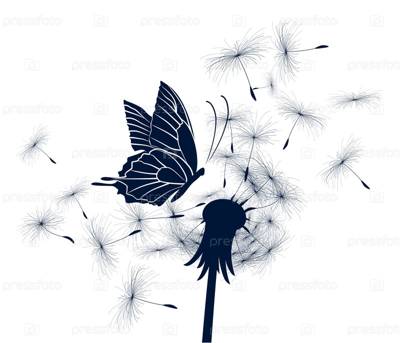 Полевой одуванчик с летящей бабочкой