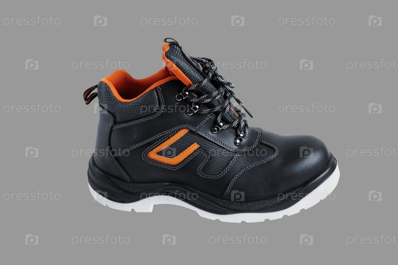 Защитная защитная обувь. Крупный план. Изолированные на сером фоне