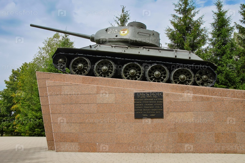 Танк Т-34-85 на постаменте на Прохоровском поле-музее (Звонница) самого крупного танкового сражения Великой Отечественной Войны (Россия, Прохоровка, Курская дуга)
