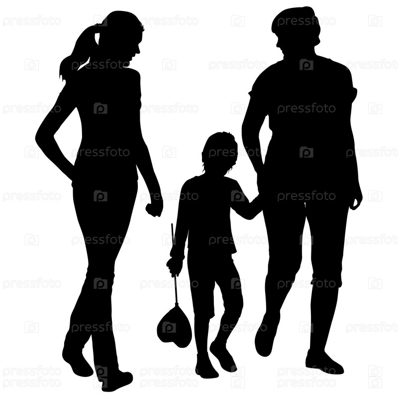 Силуэт счастливой семьи на белом фоне