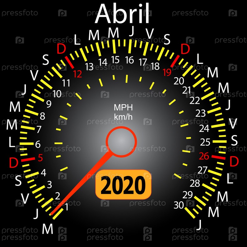 Календарь спидометра 2020 года в испанском апреле