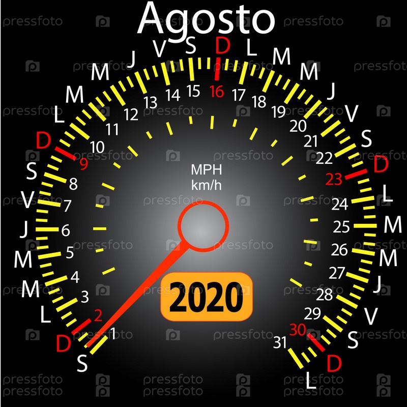 Календарь спидометра на 2020 год в испанском августе