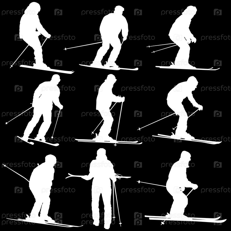 Установить горнолыжник, мчащийся вниз по склону спортивный силуэт