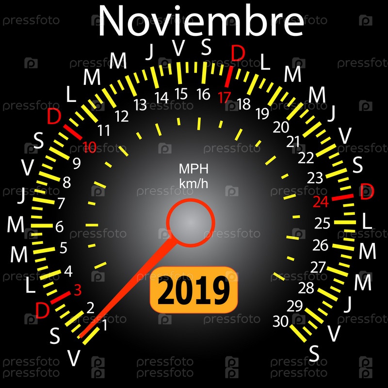 Календарь спидометра автомобиля на 2019 год на испанском языке, ноябрь
