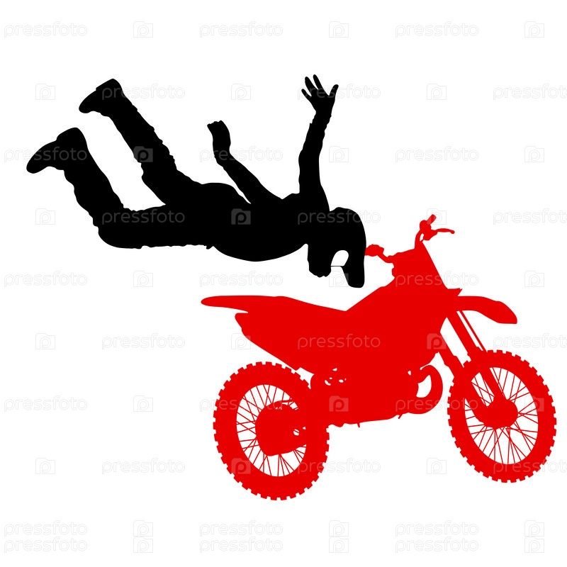Силуэт мотоциклиста, выполняющего трюк на белом фоне