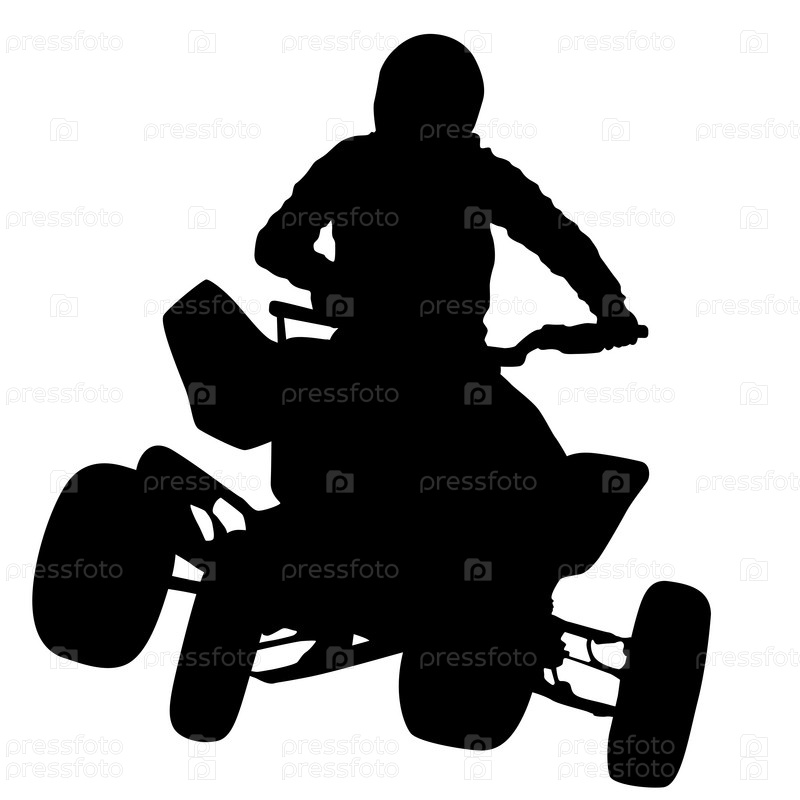 Силуэт мотоциклиста на квадроцикле, на белом фоне