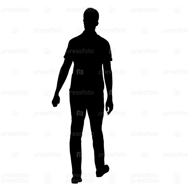 Черный силуэт мужчины стоит, люди на белом фоне