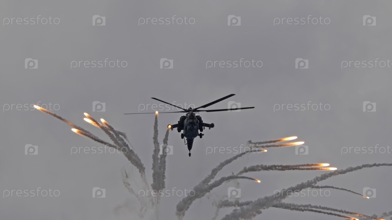 КУБИНКА, РОССИЯ - 15 мая 2021 года: ударные вертолеты Ми-28, 30-летие пилотажной группы "СТРИЖИ"