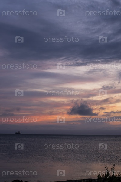 Прекрасный закат над морем с кораблем вдалеке