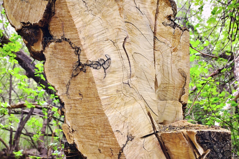 Распиленное и рубленное дерево в лесу. Концепция охраны природы. Вырубка лесов и парки