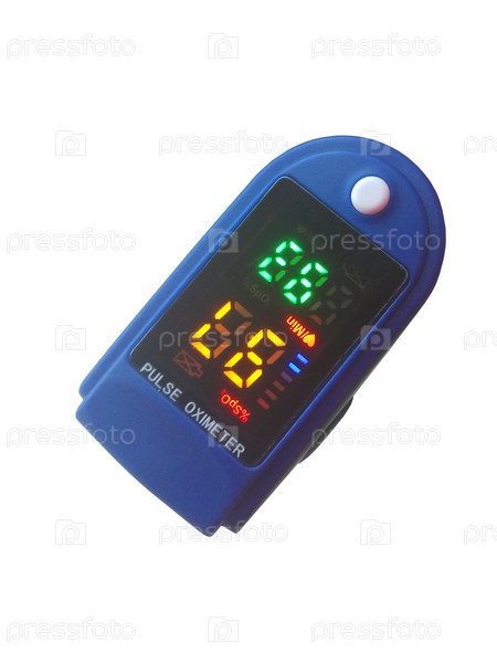 Пульсоксиметр на кончике пальца на белом фоне