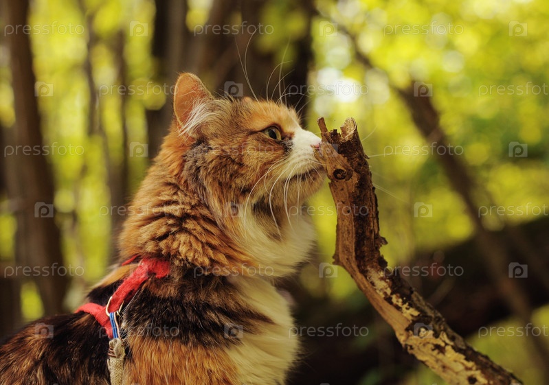 Трехцветная кошка на природе