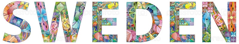Векторное слово Швеция. Ручная роспись художественного дизайна. Иллюстрация для дизайна футболок, татуировок и других украшений