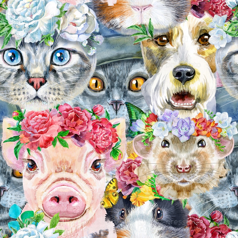 Граница с домашними животными. Ручная роспись акварелью, изолировать клип-арт на белом фоне. Дизайн баннера