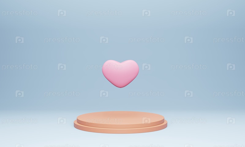 3D-рендеринг светящегося сердца, плавающего на постаменте, монохромный фиолетовый цвет, концепция поздравительной открытки ко Дню святого Валентина