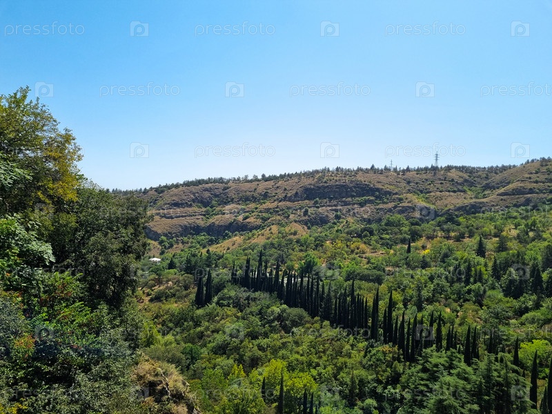 Ботанический сад Тбилиси с высоты. Лес, туи посаженые в ряд