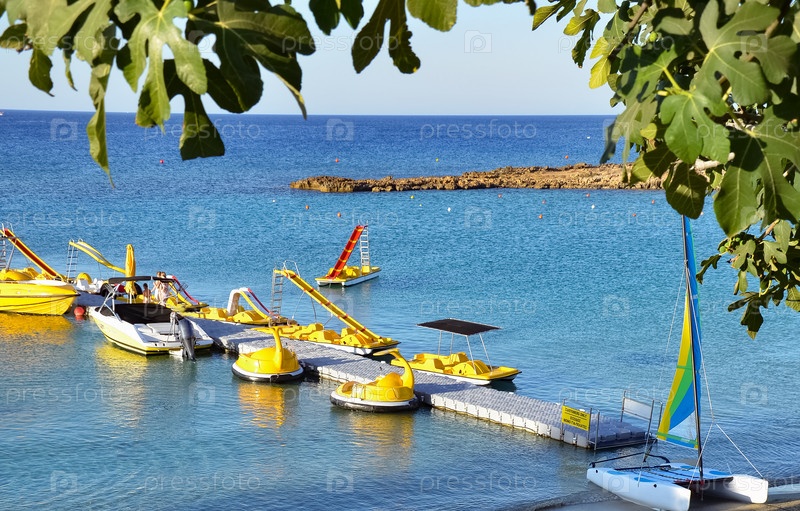 Экскурсионные и рыбацкие лодки пришвартованы на красивом пляже Мальдивских островов в голубой воде