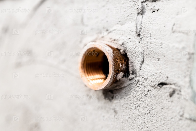 Установлен и оштукатурен эксцентрик смесителя крупным планом