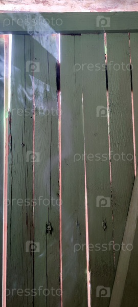 Деревянная дверь с большими петлями