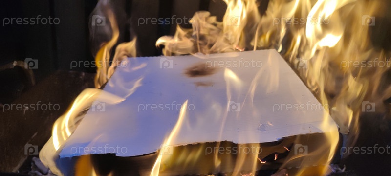 Картонная белая коробка горит