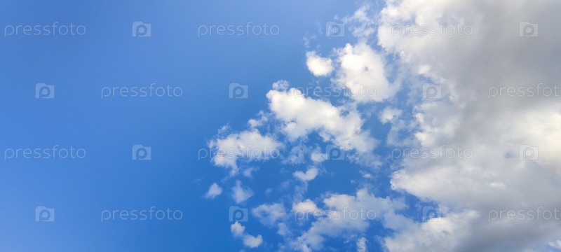 В небе белые пушистые кучевые облака