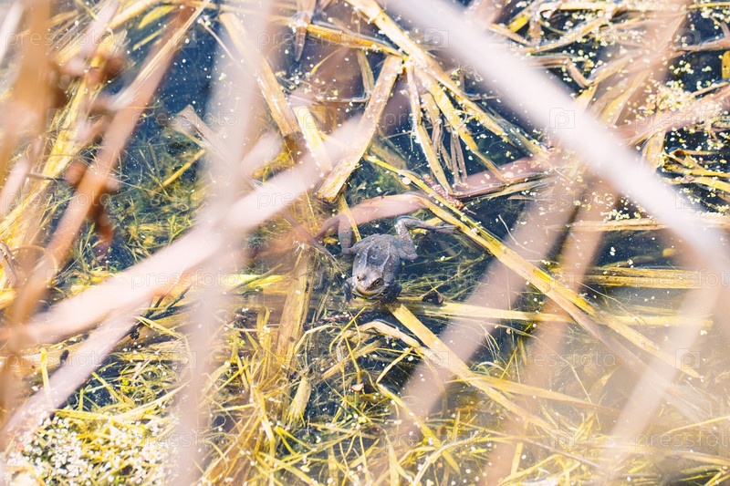 Коричневая лягушка в пруду
