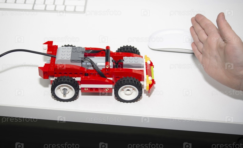 Игрушечная машина, собранная из конструктора