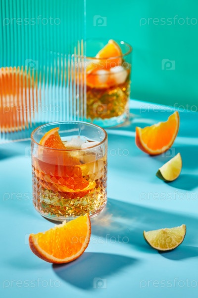 Летний напиток со льдом и апельсинами, лимонадом, алкогольным или безалкогольным коктейлем